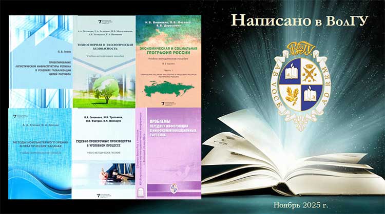 Представляем новинки учебной и научной литературы, подготовленные преподавателями ВолГУ. В обзоре представлены учебно-методические пособия по экологической безопасности, экономической и социальной географии России, уголовному процессу и методам компьютерного зрения; монография по логистической инфраструктуре региона, а также сборник докладов и тезисов Всероссийской научно-практической конференции по проблемам передачи информации.